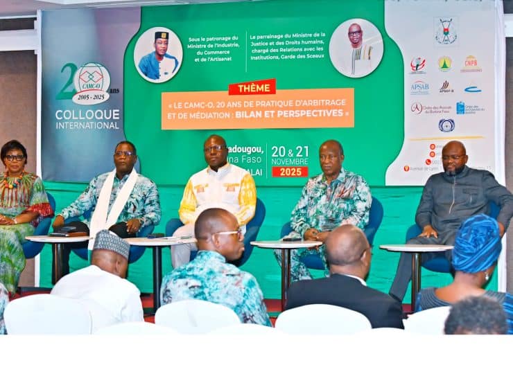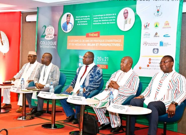Le Colloque international marquant les vingt (20) ans d’existence du CAMC-O, s’est tenu les 20 et 21 novembre 2025 à Hôtel AZALAI Ouagadougou, sous le patronage du Ministre de l’Industrie, du Commerce et de l’Artisanat et le parrainage du Ministre de la Justice. Le thème central retenu, « le CAMC-O, 20 ans de pratique d’arbitrage et de médiation : Bilan et perspectives », a été traité en quatre (4) sous-thèmes, notamment :