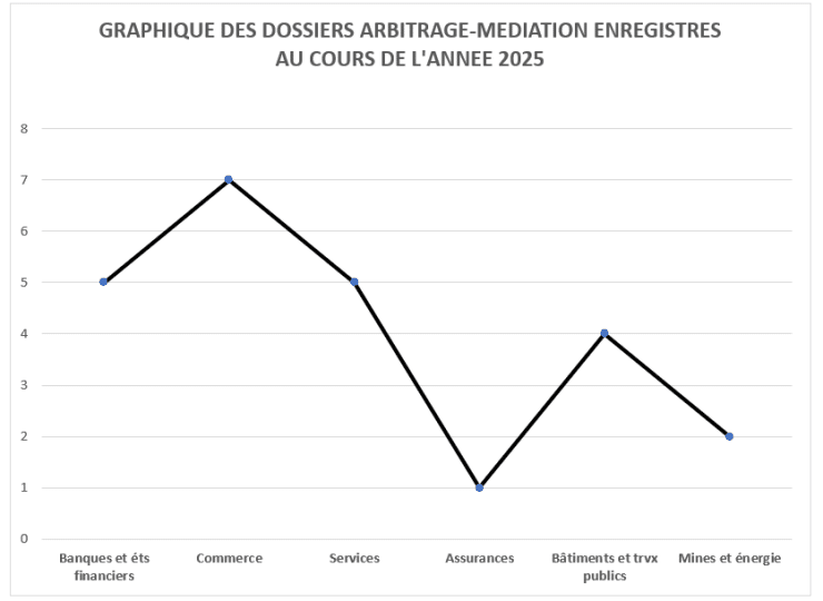 ETAT GENERAL DES DOSSIERS ENRÔLES PAR LE CENTRE (ARBITRAGE-MEDIATION) PAR SECTEUR D’ACTIVITES AU COURS DE L’ANNEE 2025