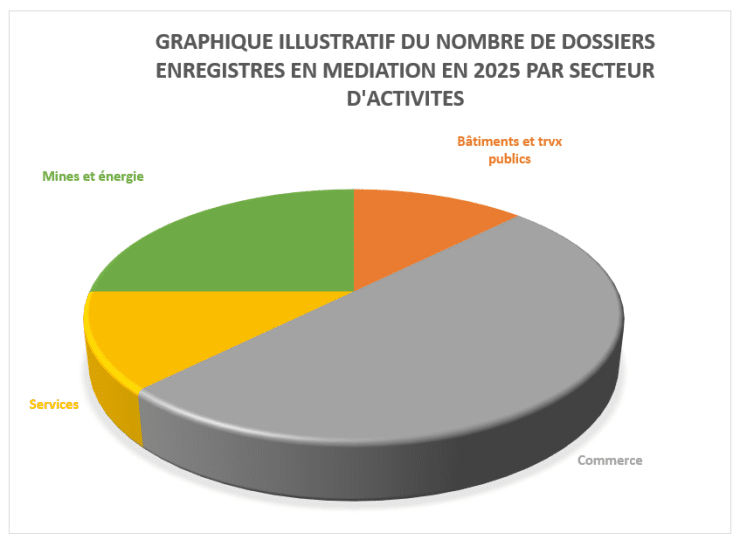 TABLEAU ILLUSTRATIF DES DOSSIERS ENREGISTRES EN MEDIATION PAR SECTEUR D’ACTIVITES AU COURS DE L’ANNEE 2025