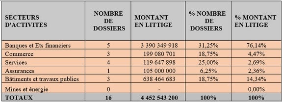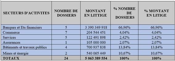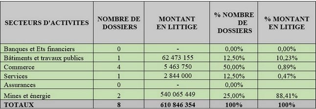 TABLEAU ILLUSTRATIF DES DOSSIERS ENREGISTRES EN ARBITRAGE PAR SECTEUR D’ACTIVITES AU COURS DE L’ANNEE 2025